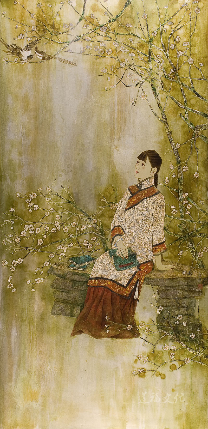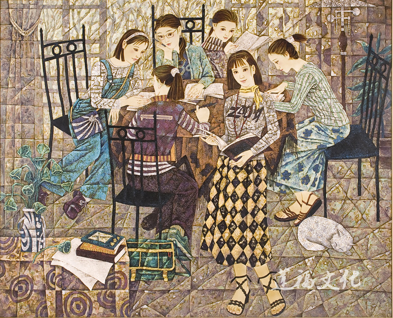 作品《書中自有真情在》:第五屆全國漆畫展評委作品。(中國美術(shù)家協(xié)會主辦)2019年。