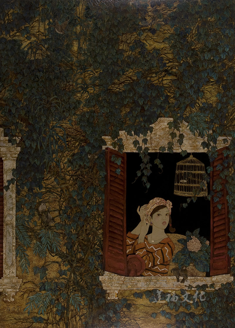 作品《清風(fēng)徐來》:“魅力紅谷”首屆全國小幅漆畫展評委作品。(中國美術(shù)家協(xié)會主辦)2018年。