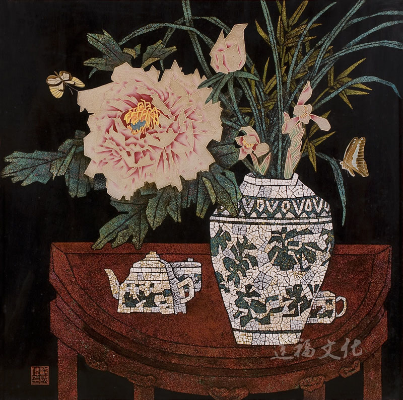 作品《惠風(fēng)古韻》獲第二屆全國漆畫展優(yōu)秀獎(jiǎng)。(中國美術(shù)家協(xié)會主辦,廣州市政府收藏)2007年