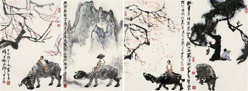 近現(xiàn)代書(shū)畫(huà)部分,匯集了二十世紀(jì)重要名家精品齊白石、傅抱石、張大千、李可染、吳昌碩、黃賓虹、陸儼少等大師的精品力作。其中,李可染的《四季牧牛圖》為藏家歷數(shù)年散珍集成,能匯成一堂四屏,實(shí)為難得。