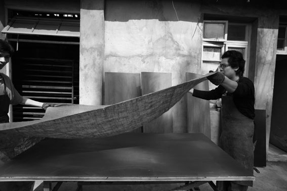 古語云:“工欲善其事,必先利其器”。在漆畫中,主要運用漆刮、漆刷、描繪漆筆、掃筆、夾子、籮篩、研磨器具、磨炭、頭發(fā)、水砂紙、油罐、玻璃板等,此外還有蔭房、蔭櫥、刻刀、切刀、剪刀、銼刀、鏟刀以及磨刀器具乃是漆畫裝飾必備的工具。