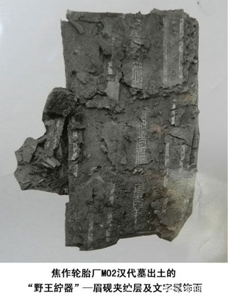 《漢書·地理志·上》河內(nèi)郡條中載:“懷,有工官。”這里所說的“懷”,是河內(nèi)郡所屬的懷縣,今焦作市武陟縣與沁陽毗鄰的地區(qū)。《漢書·貢禹傳》中也載:“蜀郡、河內(nèi)等地有工官。”工官,是當(dāng)時政府所設(shè)的專門主管手工業(yè)的官署,早已聞名于世的“野王紵器”,應(yīng)是河內(nèi)工官主管的主要手工業(yè)產(chǎn)品。1987年焦作河南輪胎廠漢墓中出土的眉硯上,就有“河內(nèi)郡工坊”的字樣,這同時說明“野王纻器”的昔日光榮。