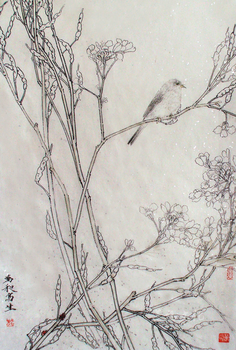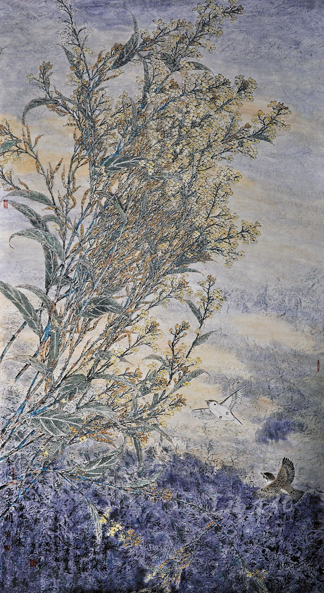 I-作??品《飛花伴春鳴》參加全國首屆現(xiàn)代工筆畫大展。 [中國美術(shù)家協(xié)會(huì)]