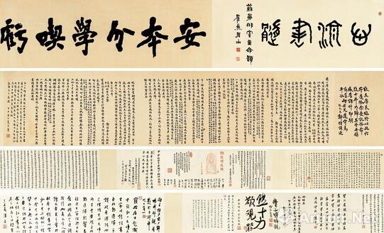引首29.5×64.5cm;本幅29.5×223cm;題跋29.5×296cm
