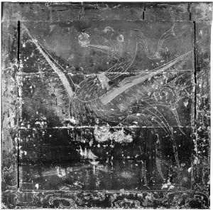 8月16日,12號墓棺槨被文物專家打開,大家驚奇地發(fā)現(xiàn),該墓的內(nèi)槨和外槨分別用方木和木板壘筑而成,采用榫卯扣合的方法并用耙釘固定。內(nèi)棺和外棺通體刷有漆,棺內(nèi)刷朱紅色,棺外刷黑色。特別是外館以黑漆為底,棺體上刷黑漆,施彩繪,四面彩繪分別代表東、西、南、北方位的青龍、白虎、朱雀、玄武四方神靈圖像,棺蓋頂部以代表月亮的蟾蜍和代表太陽的陽烏圖像作為繪畫主題,四周以卷云紋加以修飾,畫面十分豐富、精美。