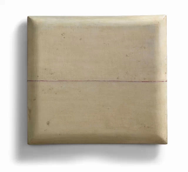 他的作品畫面看似極度簡單,制作卻異常復雜。從2013年開始,在他的作品中,所有能引起人們聯(lián)想和解釋的視覺因素都消失了,沒有花草,沒有人物,沒有字跡,沒有文化符號,也沒有任何夸張的筆觸。他只是日復一日地在擠塑板制成的拱形畫板上,層層地上著大漆,然后開始或隨意或刻意地反復打磨。他像打磨璞玉一樣打磨那些大漆,讓它們?nèi)綦[若現(xiàn),似有似無,返璞歸真。