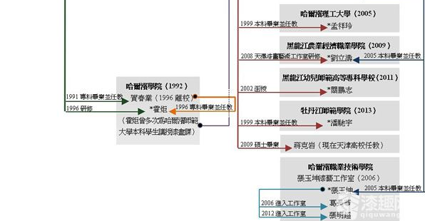 表2中,兩個(gè)層面的中心發(fā)射式路徑基本迭合,清晰地反映出黑龍江省漆畫(huà)伴隨著教學(xué)過(guò)程的傳播路線,即由具體中心點(diǎn)向外圍擴(kuò)散,形成若干個(gè)外圍點(diǎn),而每一個(gè)外圍點(diǎn)又可演變?yōu)樾碌闹行狞c(diǎn),再度向其外圍擴(kuò)散,并由此形成了「以點(diǎn)帶面」的黑龍江省漆畫(huà)發(fā)展特點(diǎn),也促成了黑龍江省漆畫(huà)的快速發(fā)展。