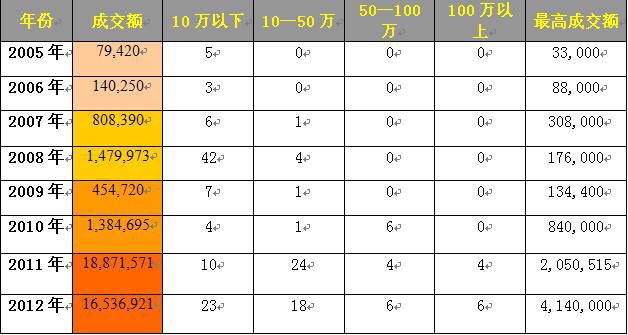 2005—2012年漆畫成交詳圖(來自雅昌藝術(shù)監(jiān)測中心)