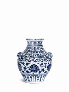 元青花纏枝牡丹鳳紋獸耳罐