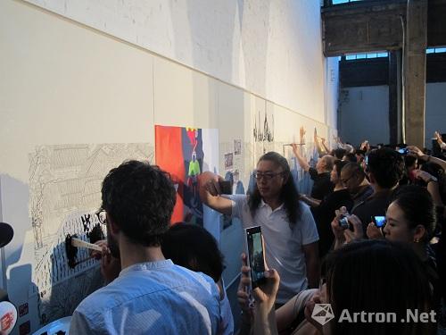 2014年6月28日下午6點(diǎn)30分,“第二屆中意雙年展”VIP預(yù)展在798藝術(shù)區(qū)藝術(shù)工廠開幕。開幕當(dāng)天,意大利方策展人桑德羅•奧蘭迪與中方策展團(tuán)隊(duì),各國(guó)的大使等都前來參加了開幕式。開幕式分為幾部分,首先,在藝術(shù)工廠,發(fā)生了一場(chǎng)行為藝術(shù),由十多位藝術(shù)家及建筑師共同在一幅繪制幾個(gè)月而成的《春明上河圖》上再創(chuàng)作,此次行為很好地回應(yīng)了本屆中意雙年展的主題“記憶”,因?yàn)檫@個(gè)行為連接起了過去與現(xiàn)在;之后,所有嘉賓驅(qū)車來到展覽的第二主場(chǎng):北京市塑料三廠文化園,參加活動(dòng)晚宴,并觀看在這兒的作品:以年輕人為主的面向未來的“記憶”。