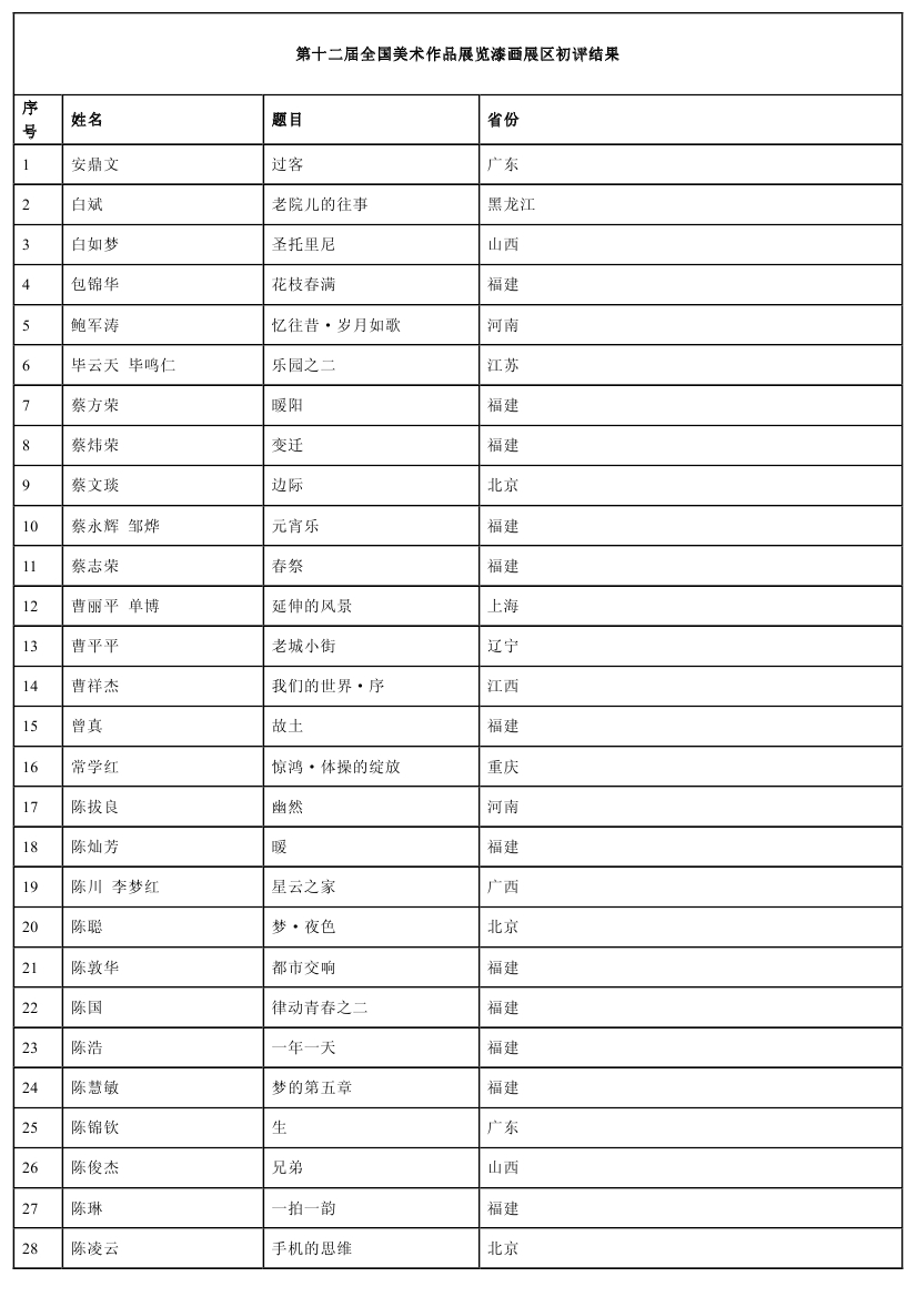 第十二屆全國美術(shù)作品展覽漆畫展區(qū)初評結(jié)果