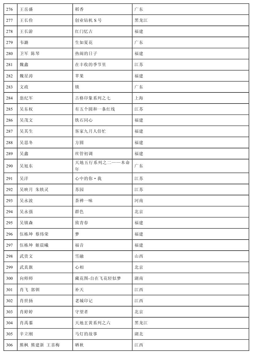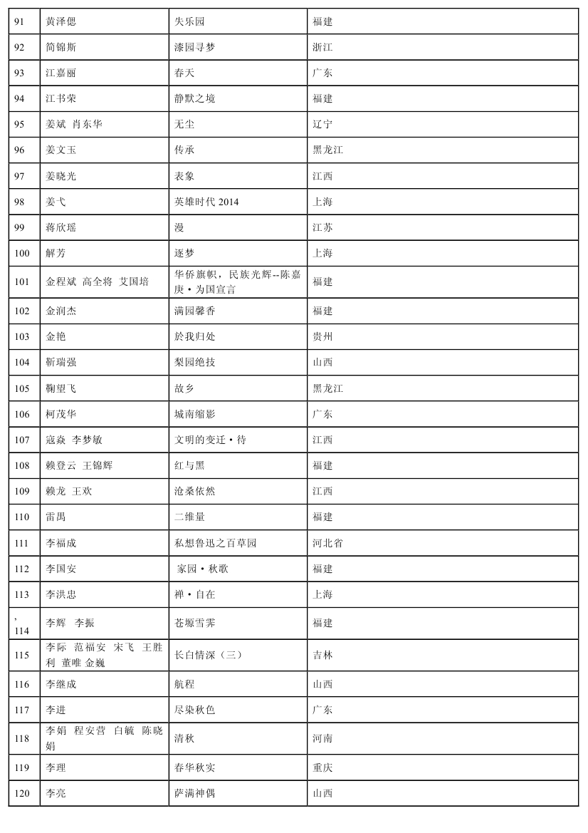 注:參評作品尺寸嚴(yán)格按照畫種尺寸(成品尺寸)要求送件,超尺寸作品展區(qū)一律不接收。請妥善包裝、安全寄送。不在此名單內(nèi)的作者,請勿寄送作品。作品不參評,并由此產(chǎn)生的郵寄、保險、安全等一切后果自負(fù),特此聲明。