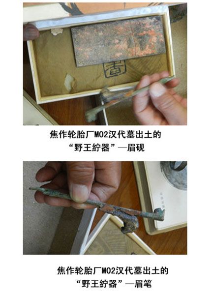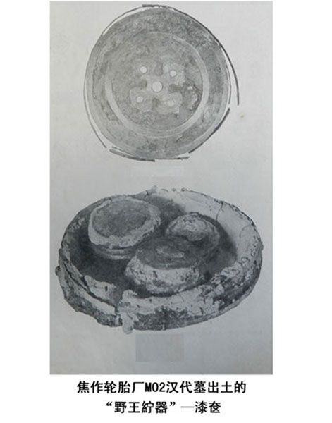 《漢書·地理志·上》河內(nèi)郡條中載:“懷,有工官。”這里所說的“懷”,是河內(nèi)郡所屬的懷縣,今焦作市武陟縣與沁陽毗鄰的地區(qū)。《漢書·貢禹傳》中也載:“蜀郡、河內(nèi)等地有工官。”工官,是當(dāng)時政府所設(shè)的專門主管手工業(yè)的官署,早已聞名于世的“野王紵器”,應(yīng)是河內(nèi)工官主管的主要手工業(yè)產(chǎn)品。1987年焦作河南輪胎廠漢墓中出土的眉硯上,就有“河內(nèi)郡工坊”的字樣,這同時說明“野王纻器”的昔日光榮。