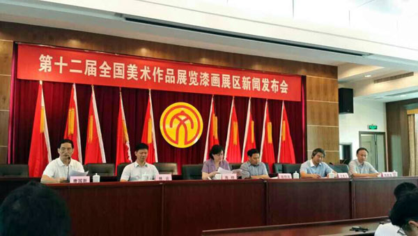 為慶祝新中國成立65周年、展示美術風貌,由中華人民共和國文化部、中國文學藝術界聯合會、中國美術家協會主辦;福州市人民政府、福建省文學藝術界聯合會、福建省美術家協會、福建拓福文教基金會承辦;福州市文化新聞出版局、福建省文聯書畫藝術發(fā)展有限公司、福建省美協漆畫藝術委員會、福建拓福文化發(fā)展有限公司協辦的第十二屆全國美術作品展覽漆畫展區(qū)于9月1日至10日在福州海峽國際會展中心隆重舉行。