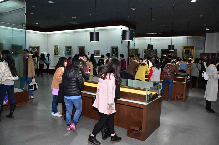 漆畫工作室成立八年來,已有數(shù)十個班級不同的專業(yè)數(shù)百名學(xué)生參加了漆畫的學(xué)習(xí)和培訓(xùn),還為全校開設(shè)了公選漆藝課五期,接受了不同院系的學(xué)生一百多人入室學(xué)習(xí)。