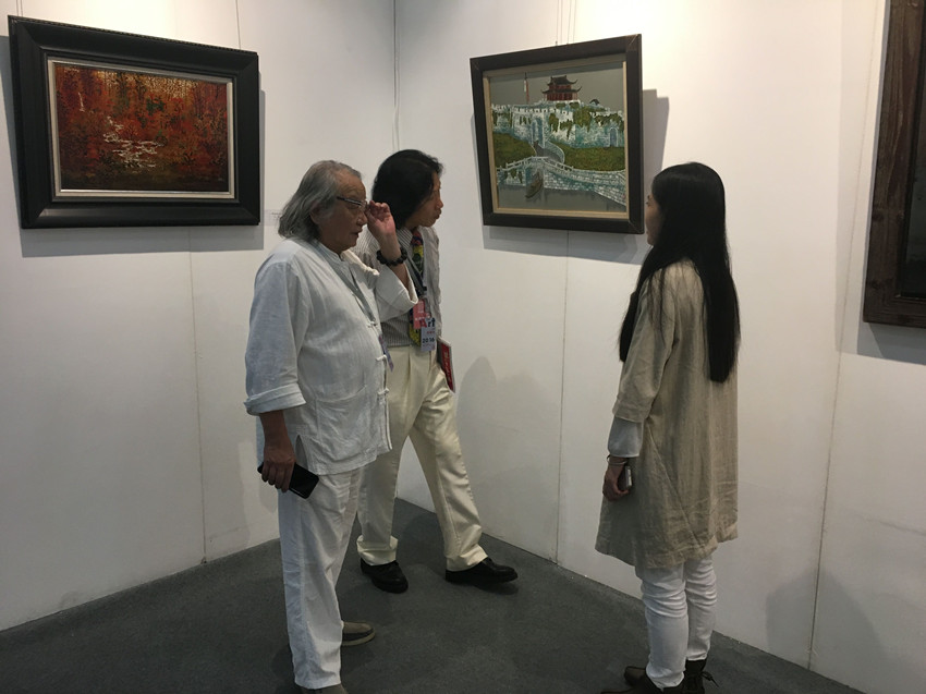 組委會(huì)藝術(shù)總監(jiān)徐夫耕與韓國(guó)畫家前來(lái)參觀指導(dǎo)